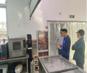 由于学校食堂属于消防重点单位的重点部位,队员们对食堂内的各个部位进行了详细的检查。来到餐厅一楼大厅,他们首先抽查了部分应急照明灯,检查应急照明灯能能是否正常。应急照明灯在事故突发引起停电的情况下,会自动进入工作状态,为人员疏散提供足够的照明。接着,队员们查看了消防设施,检查消防栓箱内的器材和设施是否完备,并查验了灭火器是否在有效期内。队员们还逐一打开消火栓,试验了消防栓内水的压力是否正常。消防设施和器材功能正常,能够保证在火灾时有效进行灭火扑救,避免引发更大的生命财产损失。随后,队员们对大厅内的消防卷帘进行了功能测试,并对部分逃生通道进行了检查。检查过程中,队员们发现部分餐桌椅摆到了防火卷帘下、部分阻塞了逃生通道。对此类问题,安保处责令相应餐饮公司进行了即行整改。检查结束,消防队员模拟餐厅后厨起火,进行了实地灭火演练。