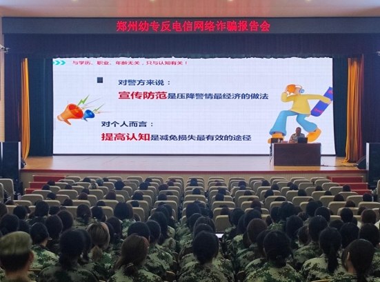 本次报告会特邀郑州市公安局金水分局杜岭街派出所二级警长李星主讲。李警官围绕刷单返利类、虚假购物与网络游戏类、冒充客服类、冒充领导熟人类等学生群体高发的四类电信网络诈骗类型进行详细讲解。同时,李警官特别强调两大核心禁忌:“绝对不要与他人共享屏幕,防止隐私信息泄露”;“不存在任何‘安全账户’,要求转账至‘安全账户’的均为诈骗”,通过反复强化,加深学生记忆。