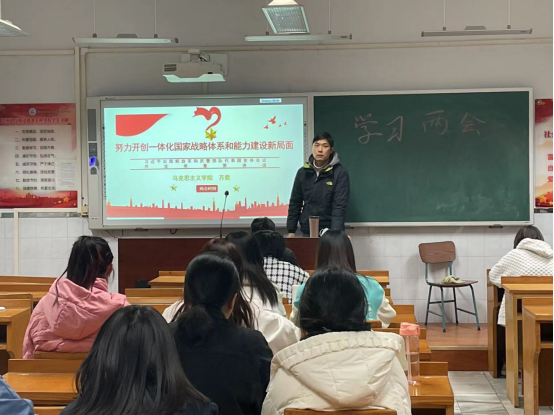 在全面学习贯彻落实党的二十大精神的开局之年,备受关注的全国“两会”在北京人民大会堂胜利召开。为第一时间推动“两会”精神进课堂,更好地发挥思政课立德树人的主渠道作用,学校人民武装部积极学习习近平总书记在十四届全国人大一次会议解放军和武警部队代表团全体会议上的讲话精神,将“两会”精神有机融入课堂教学,引导学生树立关心国防、热爱国防、保卫国防的思想意识。