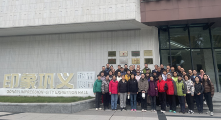 经过1小时车程,抵达了“印象巩义·城市客厅”。在讲解员的引导下,大家依次参观了人文历史长廊、建设成就互动区(一层)和城市沙盘秀、未来体验区(二层)。从夏商时期的“河洛古国”到如今的现代化工业强市,从传统村落保护到智慧城市规划,教职工们不时驻足凝视、交流讨论,深刻感受到巩义作为千年古城的厚重底蕴与蓬勃活力。