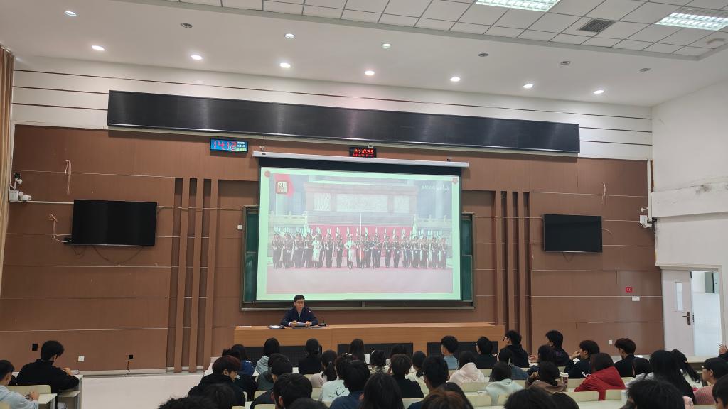 课上,王书记首先带领同学们回顾了纪念中国人民抗日战争暨世界反法西斯战争胜利80周年阅兵的场景,并与开国大典阅兵画面进行对比,生动阐释了国家从积贫积弱到繁荣富强的伟大飞跃。接着,王书记从“德”字的甲骨文讲起,深入阐述了立德对个人成长成才的重要性,重点解读了习近平总书记提出的“明大德”要求。王书记还指出,梦想从学习开始,事业靠本领成就,他期望同学们珍惜时光,勤学不辍,并将知识应用于实践。