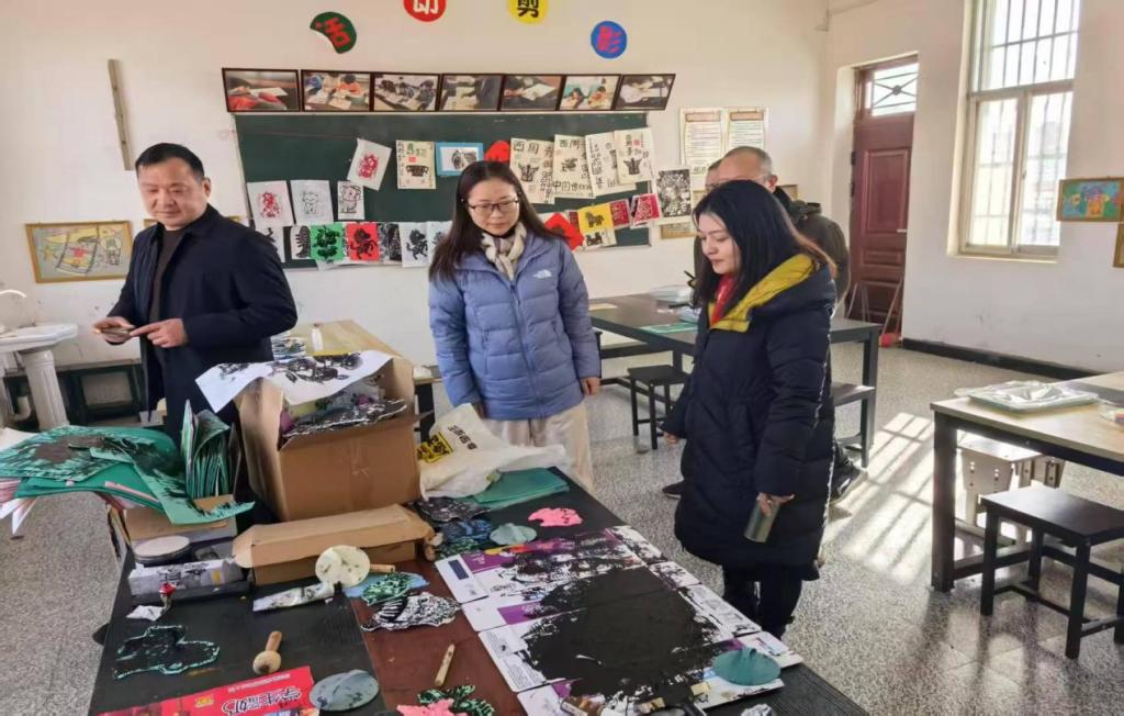 调研团队先后走访尉氏县第二公办幼儿园、水黄村小学、门楼任乡小学,深入心理健康辅导室、音乐教室、书法教室、绘本阅读室及剪纸室等功能场所,全面了解各校美育设施配置、课程开展及师资建设现状,精准把握基层美育实践中的痛点诉求与发展需求。