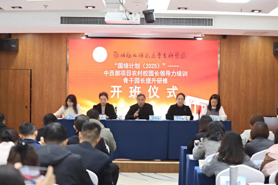 金秋送爽,硕果飘香。2025年11月1日上午,由我校承办的“国培计划(2025)”——中西部项目农村校园长领导力培训骨干园长提升研修开班仪式隆重举行。郑州幼儿师范高等专科学校继续教育学院院长钟明亮、马克思主义学院院长梁彩霞、继续教育学院培训部主任徐莎莎,以及来自驻马店的50名幼儿园园长共同出席了本次开班仪式,仪式由继续教育学院教师陈景凡主持。