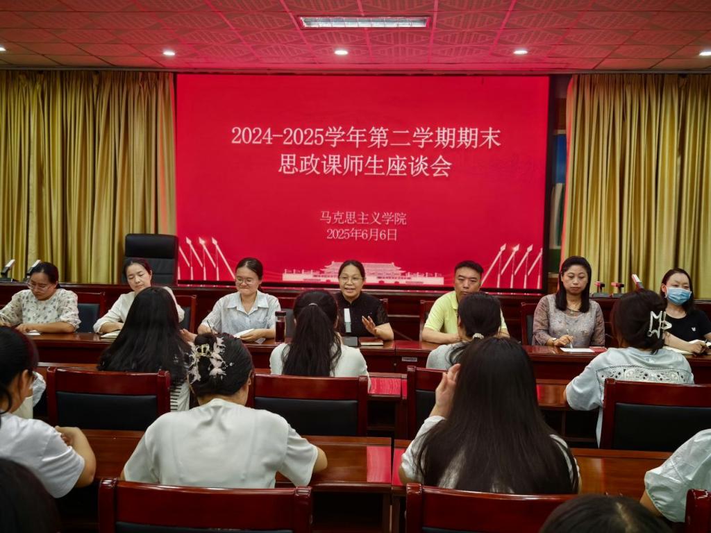 最后,梁彩霞院长作总结发言并提出两点要求。一是感谢学生对思政课教学的高度认可和积极建言,并对学生学习思政课提出了要求,希望学生真正重视思政课的学习,以己之状态成就个人之发展。在学好理论的同时,还要对自己的大学生活进行规划,培养担当意识,实现学思用贯通,知信行统一,争做有理想、敢担当、能吃苦、肯奋斗的新时代好青年。二是学院要系统梳理学生所提问题,组织教师集中研讨,加以解决,进一步推动思政课内容创新、方法创新、话语创新,全面提升课程建设水平和质量。
