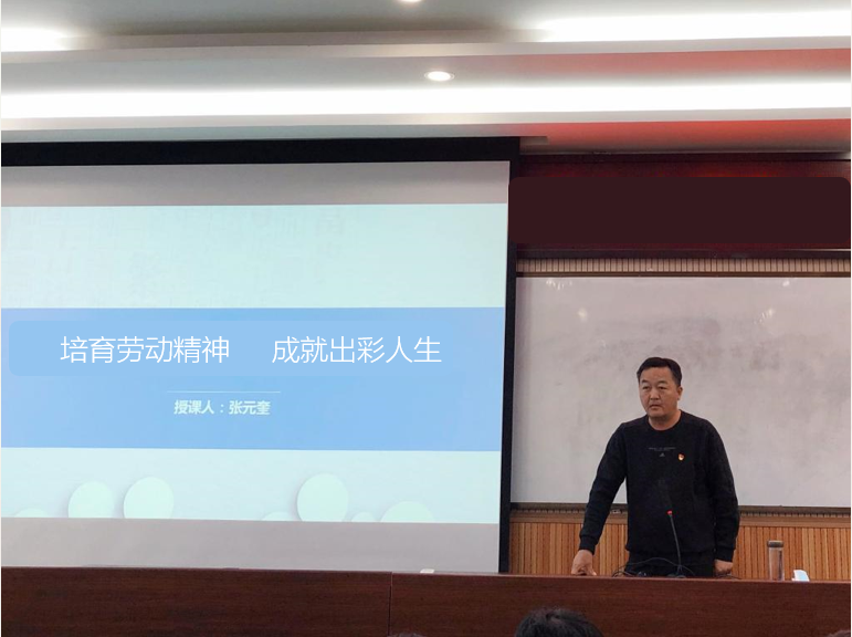 为进一步落实中共中央、国务院发布的《关于全面加强新时代大中小学劳动教育的实施意见》文件精神,充分贯彻党的教育方针,坚持“五育并举”,把劳动教育纳入人才培养全过程,培养德智体美劳全面发展的社会主义建设者和接班人,根据我校党委关于领导干部讲授思政课工作安排,11月30日上午,我校副校长张元奎以“培育劳动精神 成就出彩人生”为主题,为21级学前教育专业的学生们上了一堂既有理论高度,又有实践温度的劳动教育思政课。