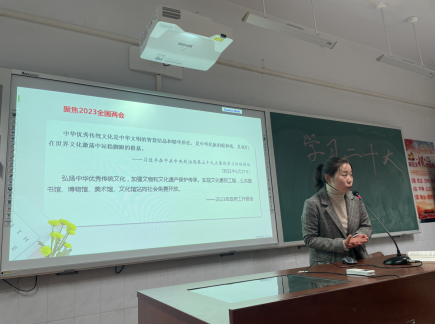 王梦孜老师从全国“两会”聚焦民生的角度出发,向学生解读政府工作报告中提到的“大力发展职业教育”,让学生意识到未来就业和专业发展与国家政策息息相关。薛晓辉老师从政府工作报告中指出弘扬中华优秀传统文化,实现文化惠民工程,引导大学生要尊重传承中华优秀文化,自觉去恶向善,提升道德品质和综合素养。