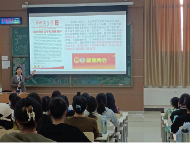 崔培英老师和王昱君老师立足学生视角,从青年关注的“两会”教育热点议题出发,引导学生树立献身幼教理念,努力练就过硬本领,让青春之花绽放在祖国最需要的地方,真正把青年学生培养成为德才兼备的“四有”好老师,为祖国的幼教事业输送高质量的、强有力的人才。