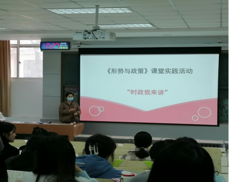 《形势与政策》课程组教师结合课程特点,积极开展课堂实践活动——“时政我来讲”,将课内知识和课外实践结合得更加紧密,在实践过程中使同学们加深了对形势与政策课程知识的领悟,提升了综合素质,提高了他们的社会责任感及社会认知,达到了增强爱国主义精神的目的,有效地实现了思政课理论性和实践性相统一。