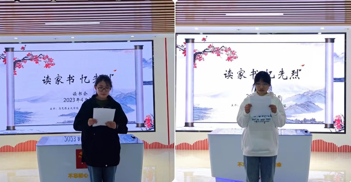 学生代表王孜婧和赵梦娆诵读家书