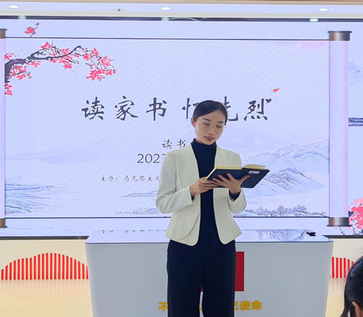 接着,学生代表王孜婧为大家诵读了《习近平写给父亲的拜寿信》。习近平在革命家庭中长大,父亲习仲勋既有慈父的一面,同时也特别重视以身垂范、从严教子。跨越时空、历史定格在习近平与父亲那些父子同心的动人故事。故事背后,是父爱深沉,也是责任传承。学生代表赵梦娆诵读了《周恩来写给邓颖超的家书》。通过这封家书,让我们看到了革命者的浪漫不是狭隘的小情小爱,而是融入到了对人民、对国家的无私大爱中,看到了同为革命者的周恩来和邓颖超一生风雨相伴,为了共同的革命理想携手奋斗的浪漫真情。
