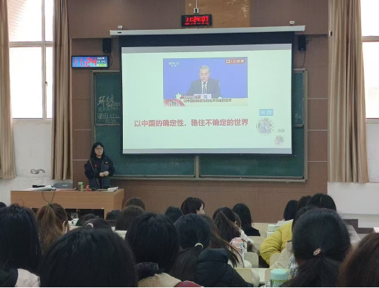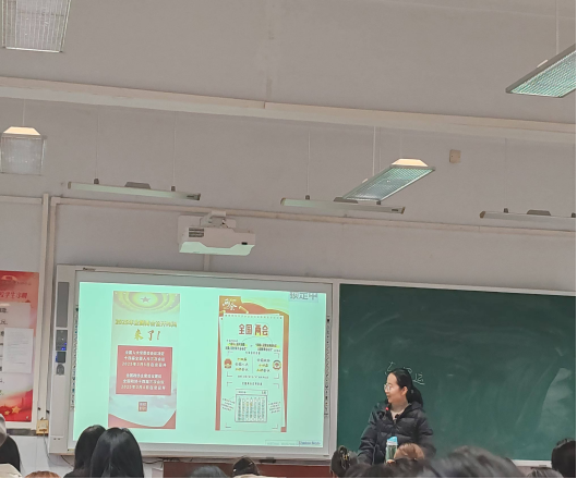 通过开展“两会”精神进课堂活动,老师们认真学习悟透“两会”精神,紧扣课程与“两会”内容,将“两会”精神有机融入到课堂教学中,让重大时政热点进课堂、进教学,不仅有助于提升思政课教学的针对性和实效性,还能使同学们进一步坚定理想信念,增强学习的内在动力。