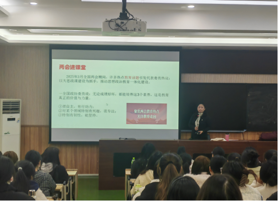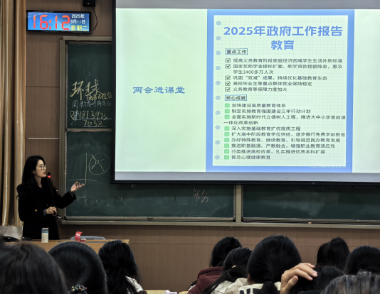 全国“两会”是青年学生了解国家发展大势、掌握最新政策的“大课堂”,为引导学生深刻领会“两会”精神,切身感受党和国家事业取得的重大成绩,将“两会”精神转化为生动的授课教材,马克思主义学院各教研室和课程组分别结合课程内容,积极研讨,开展2025全国“两会”精神进课堂活动。