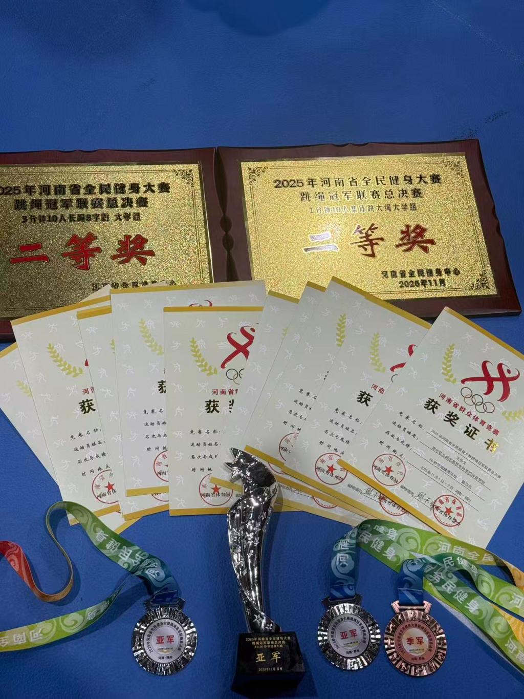 2025年11月1日-2日,由河南省体育局主办的2025年河南省全民健身大赛跳绳冠军联赛总决赛在郑州圆满落幕。我院学子组成的参赛队伍奋勇争先、默契协作,在多个项目中脱颖而出,交出了一份亮眼的成绩单。
