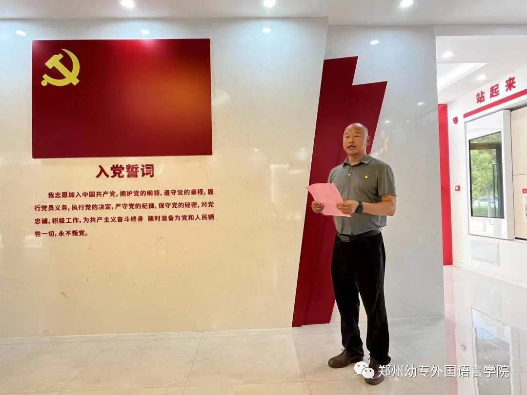 为进一步教育引导新发展党员铭记入党初心、强化党员意识、坚定理想信念,充分发挥先锋模范作用,7月24日,外国语言学院师生联合党支部在象湖校区智慧党建和思政教育中心组织开展2023年新发展党员入党宣誓仪式,外国语言学院党总支书记娄沂,副书记吴宏宇出席本次宣誓仪式。仪式由师生联合党支部书记张怡恬主持。