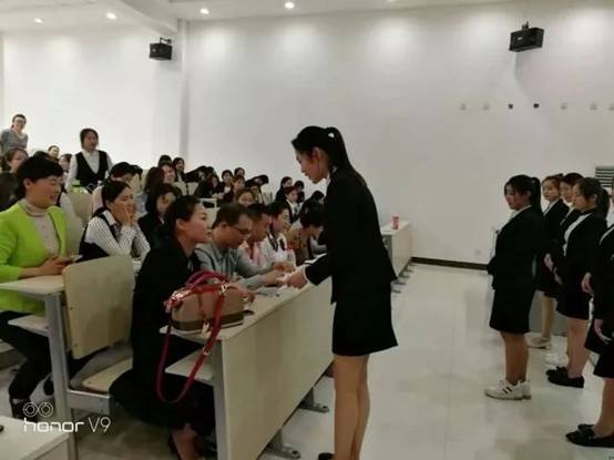 活动邀请到的嘉宾有河南飞扬国旅王涛、崔璞副总经理、张国通经理等人,以及郑州幼专英语系主任娄沂老师和英语系老师。本次营销大赛总共有51人参加,分为9个项目小组, 首先由主持人介绍莅临本次活动的嘉宾并宣布比赛开始。各参赛小组按照赛前抽签决定的出场顺序,由各组主讲人轮流以PPT形式解说营销方案,本次参赛小组的营销项目可谓是创意层出不穷,分别有蜜月旅行、绿色生态游、夕阳旅游、亲子游等旅游项目,这些旅游项目都结合了同学们的创意创新在里面,各有特色,每个参赛的项目小组的呈现都倾注了辅导老师的心血。