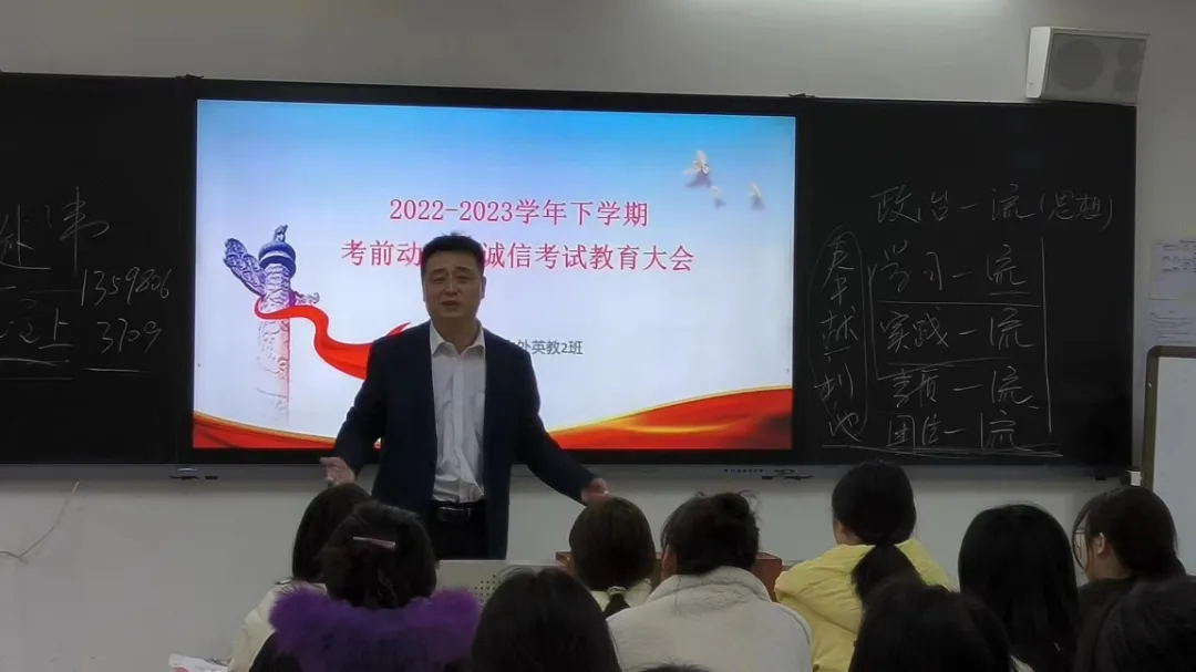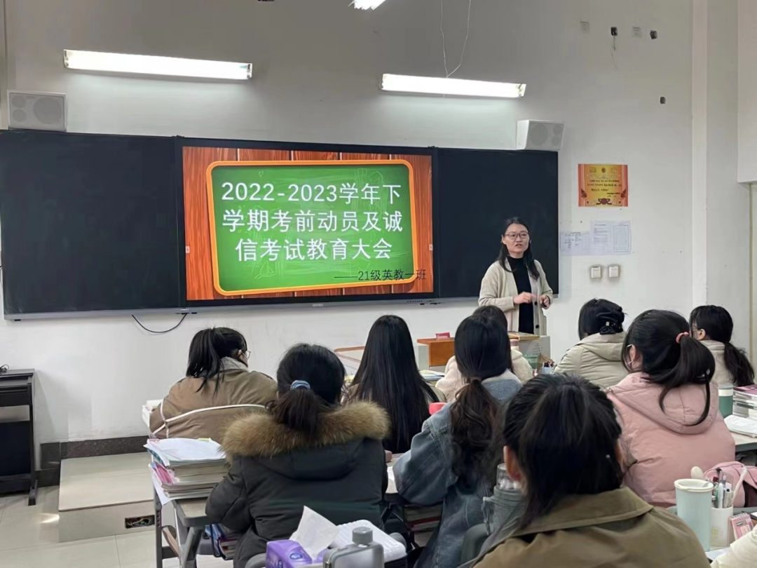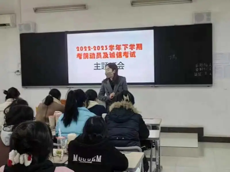 考试作为一种评价手段,不仅是对学习质量的检测,更是对道德品质的考验。而诚信考试也十分重要,恰逢考试周,为了帮同学们树立诚信考试的理念,我院于2月20日组织在校十一个班分别召开了2022-2023学年下学期考前动员及考前诚信教育会。