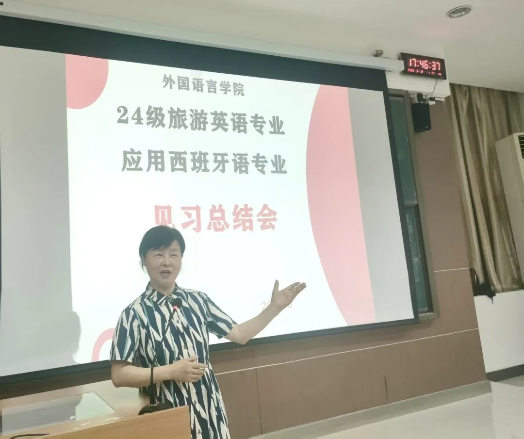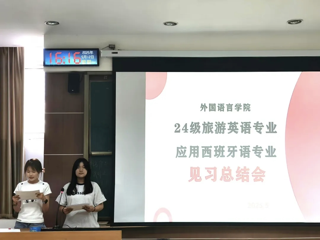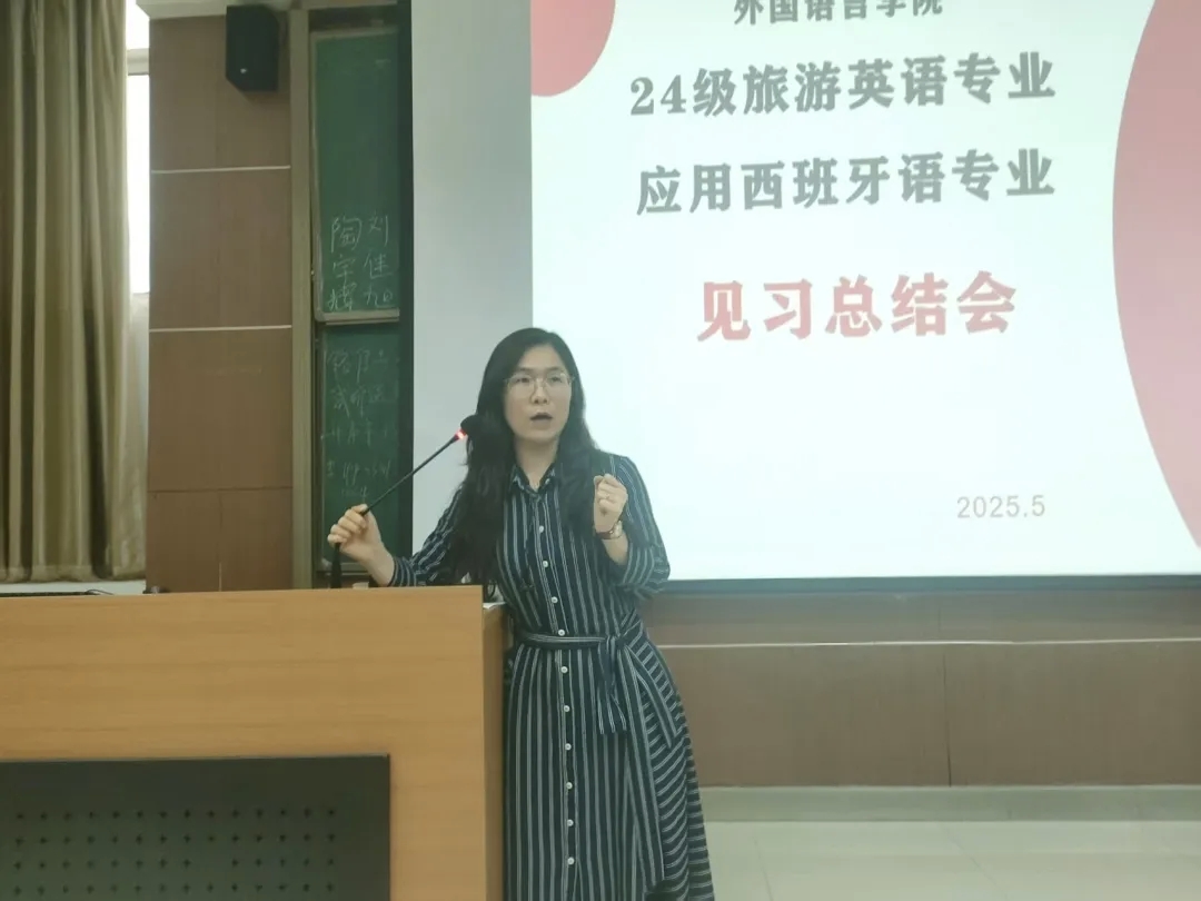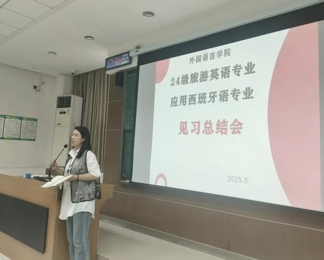 此次见习总结大会圆满落幕。会议不仅为学生搭建了展示与交流的平台,系统梳理了实践成果,更通过师生间的深度互动,精准剖析专业学习中的短板,为后续学习指明方向。同时,大会助力学生深化对理论与实践融合的认知,激发专业学习热情,推动学生成长为兼具扎实理论功底与卓越实践能力的复合型外语人才。