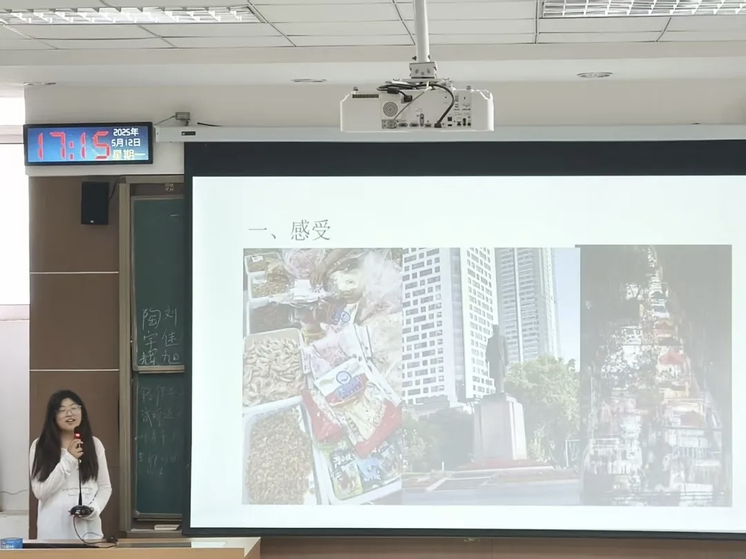 大会伊始,九位学生代表依次分享了精彩纷呈的见习故事。他们有的在博物馆中感受文化传承与精神延续;有的探讨城市间的饮食文化差异和风土人情;还有的聚焦家乡,深入挖掘当地的文化宝藏。随后,三位学生代表分享了见习感悟与收获。她们反思了行程规划、应对天气变化等方面存在的问题,同时在专业实践层面,深刻认识到语言翻译与文化融合的重要性,并表示此次见习活动让自己受益匪浅。