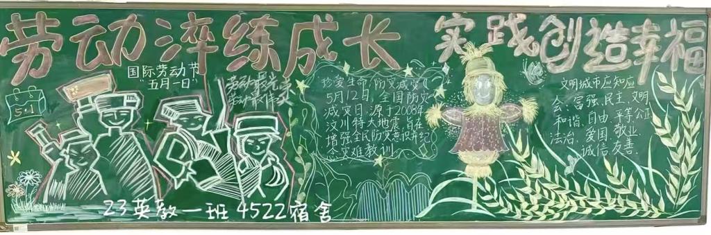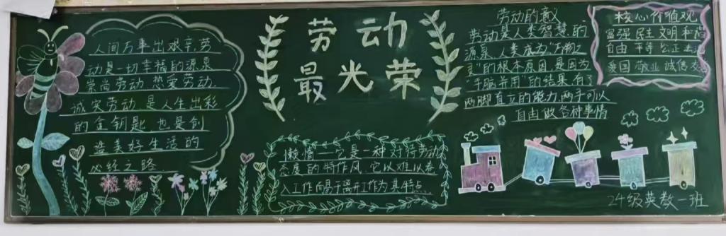 为全面贯彻劳动教育理念,厚植学生劳动情怀,培养正确劳动价值观与良好劳动习惯,外国语言学院于5月10日至18日开展“劳动淬炼成长,实践创造幸福”主题黑板报评选活动。