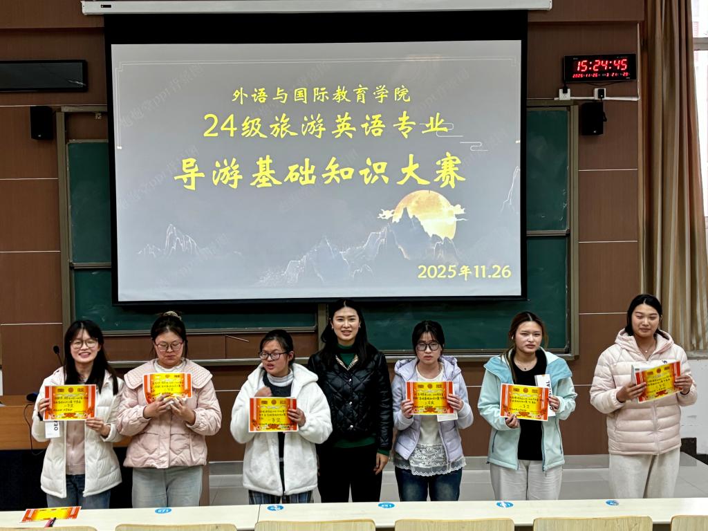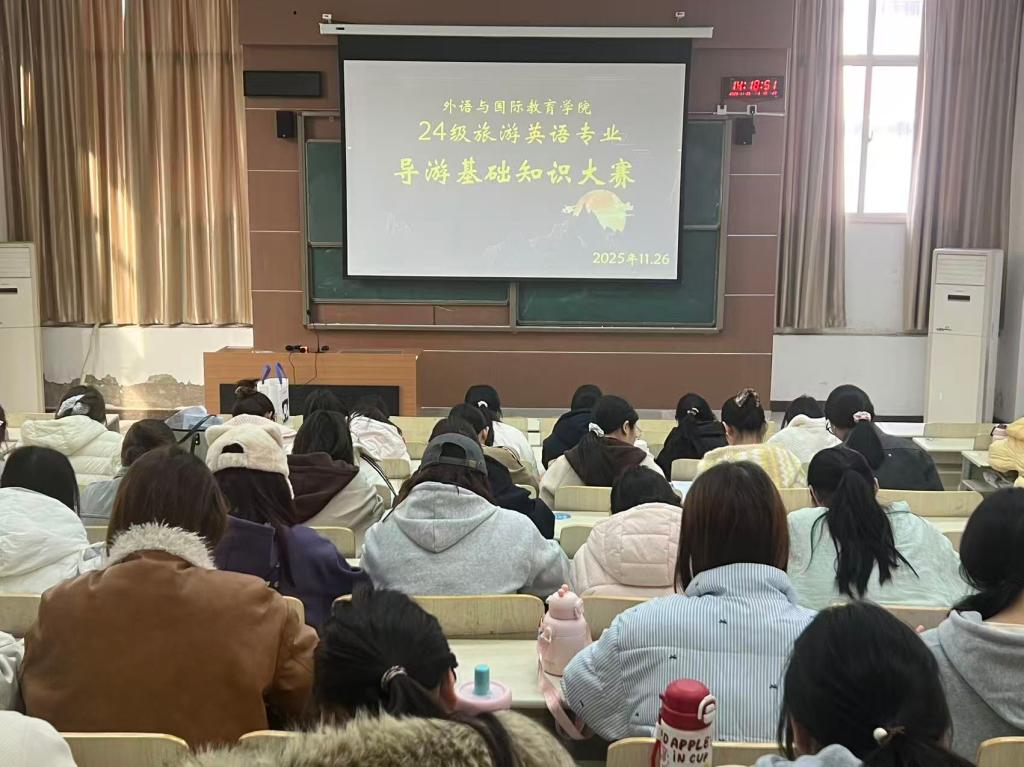 为夯实24级旅游英语专业学生的导游基础知识储备,提升专业核心素养与职业应用能力,11月26日,外语与国际教育学院在励志楼多媒体3成功举办24级旅游英语专业导游基础知识大赛