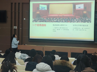 活动伊始,工作人员引导参会人员有序签到,确保学习活动规范高效开展。随后,主讲人围绕党的二十届四中全会的核心内容,通过PPT展示的形式,系统讲解全会提出的新思想、新论断、新部署,结合青年学生成长与团学工作实际,将理论要点转化为易懂的实践指引。