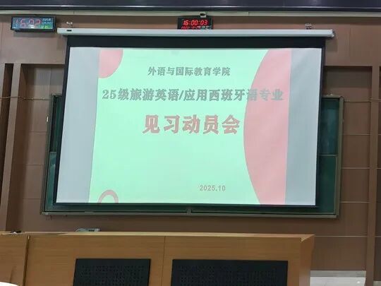 为进一步衔接专业理论教学与专业实践,明确见习任务目标、规范见习流程管理、提振学生实践信心,10月29日,外语与国际教育学院组织25级旅游英语专业与应用西班牙语专业全体学生在笃行楼多媒体五召开见习动员大会。