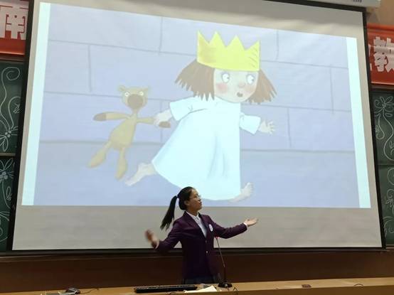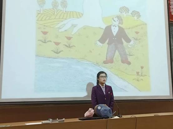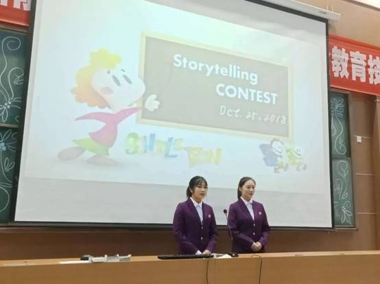 首先,主持人霍可蒙、郝晨阳为大家介绍这次比赛的形式:比赛分为推荐组和抽查组,推荐组由老师从两个班选出来的12名学生组成,抽签决定上场顺序;抽查组是各个老师现场随机抽学号,被抽到学号的的学生上台展示自己准备的英文故事。