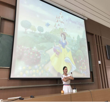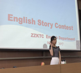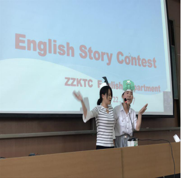 在英语教育的故事大赛中,每位参赛人员绘声绘色地为台下的同学们讲述着自己的故事,有些参赛人员用着自己独特的动作来为我们阐释故事的真谛,有些参赛人员不但用着自己独特的动作还精心准备了一些道具,当他们戴上道具为我们讲故事时更加给我们一种身临其境的感觉,最后娄主任对我们的比赛进行了深刻的总结。
