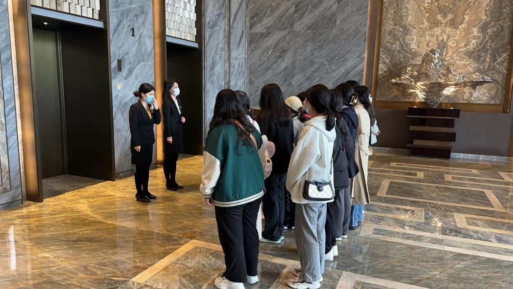 2023年03月22日上午21级旅游英语专业学生在娄沂院长、刘曼琳院长的支持和鼓励下,在吴宏宇书记,贾逢春院长,岳翔老师和李洋老师的分别带领中,前往郑州中油花园酒店、郑州建业艾美酒店、郑州富力万达文华酒店进行酒店见习活动。