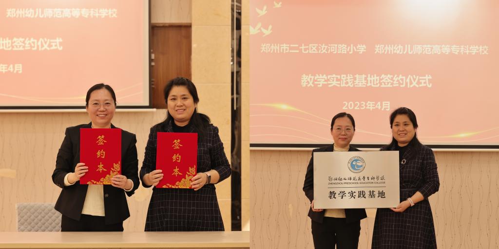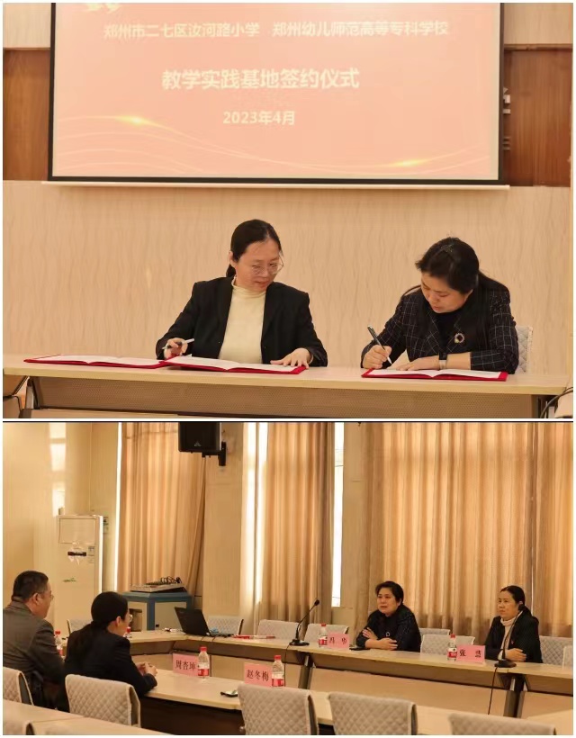 4月27日下午,我校与郑州市二七区汝河路小学合作共建的教育教学实践基地在汝河路小学报告厅正式签约授牌。汝河路小学校长冯华、党总支书记张慧、副校长王静娟等出席仪式。中国语言文学院副院长周杏坤代表学校签约授牌。