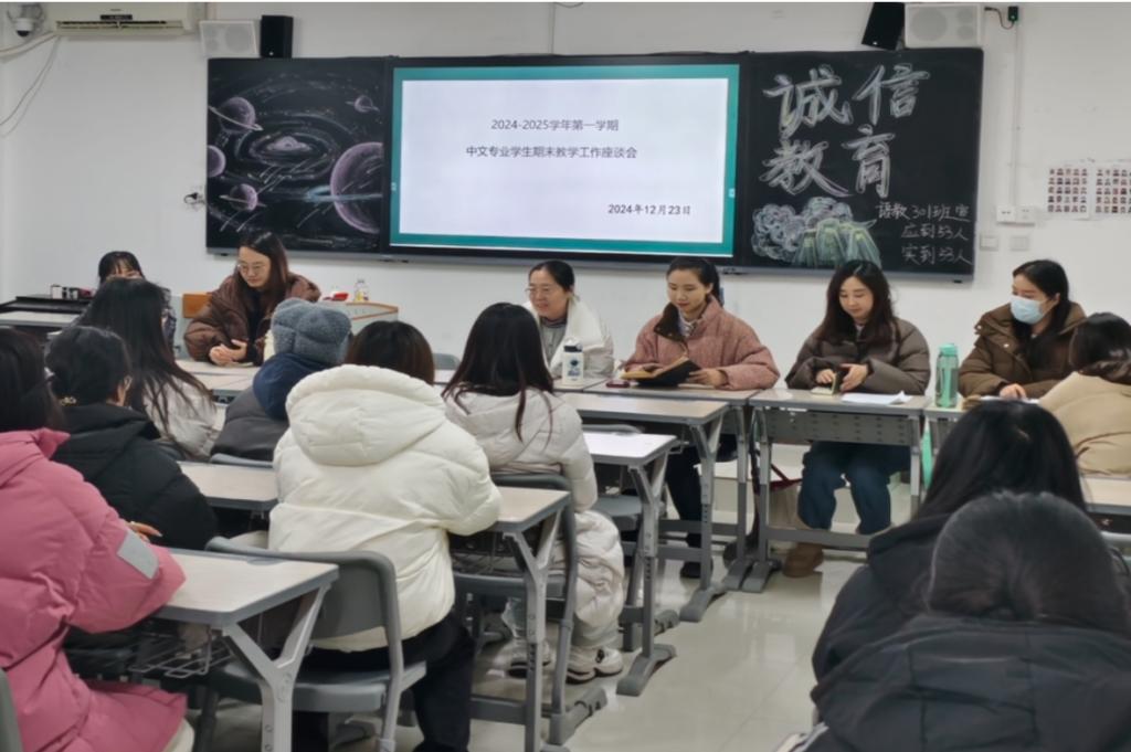 为深入了解学生对教育教学的需求和意见,进一步改进和提高教学质量,12月23日下午,中国语言文学院中文专业召开2024-2025学年第一学期期末教学工作座谈会。副院长周杏坤、中文专业任课教师代表及学生代表参加会议,中文专业负责人张艺蒙主持,师生共同探讨教育教学中的问题与发展方向。