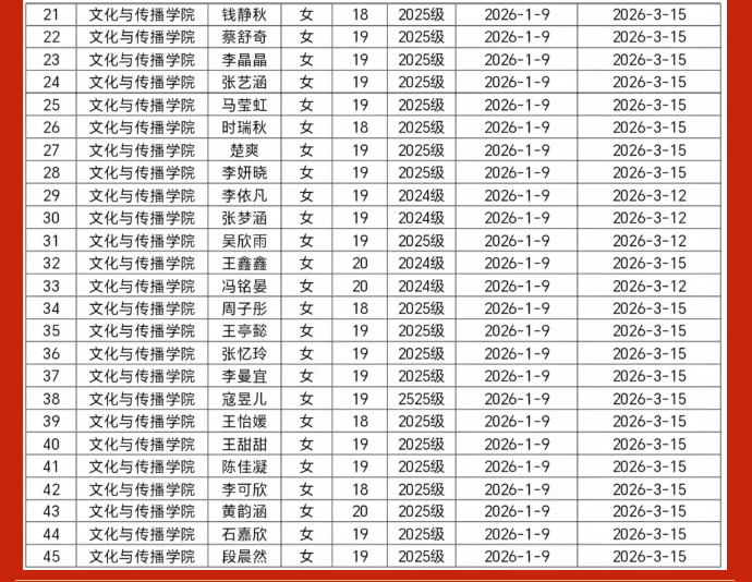 公示期共五个工作日(2026.03.19-2026.03.26),接受全校师生监督。若有异议,请在公示期内向学院团委反映。