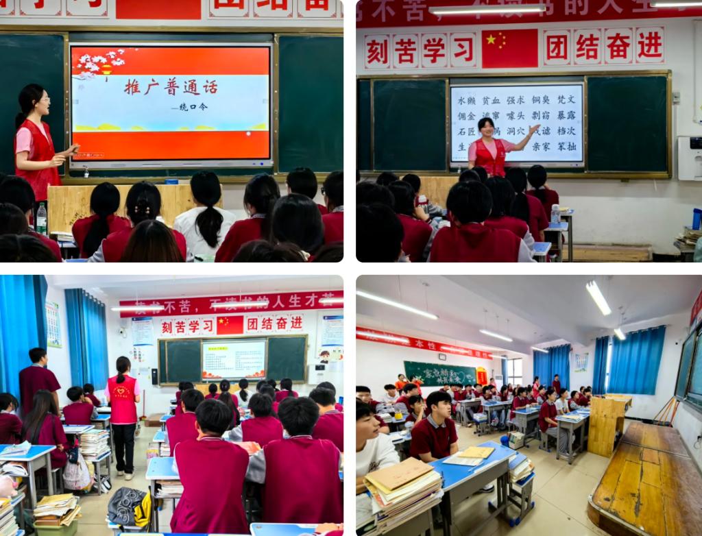 针对高中阶段学生提升口语表达能力的实际需求,实践团队走进邢庄乡昱华中学。队员们化身“小老师”,开展了专业的纠音训练和发音练习。通过志愿者讲解、小组练习和趣味语音游戏,帮助高中生们克服方言影响,掌握标准普通话的发音技巧,传递了“讲好普通话,沟通更自信”的理念,为乡村学子的全面发展注入新动能。