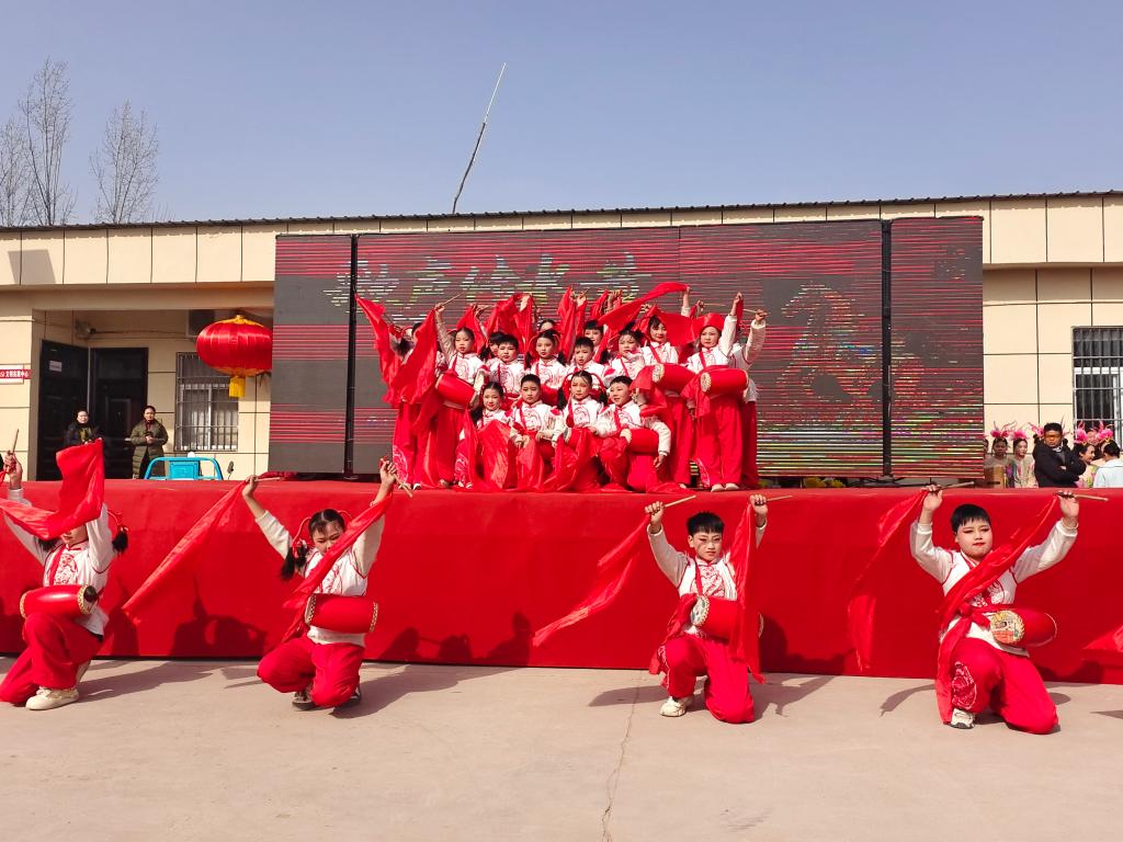 此次活动是我校“美育浸润计划”的重要组成部分,整场演出内容丰富多元、形式新颖多样,汇聚了合唱、朗诵、豫剧、舞蹈、唢呐等多种艺术形式,既有传递新春期盼、彰显家国情怀的时代旋律,也有韵味醇厚、耳熟能详的经典戏曲,更有水黄小学锦鸿腰鼓社团充满青春活力的腰鼓表演。校艺术团师生以饱满的热情、精湛的技艺,将中华优秀传统文化与时代新风有机融合,为村民们呈现了一场接地气、有温度、有情怀的视听盛宴。演出吸引周边多个村庄群众前来观看,现场气氛热烈、掌声不断,洋溢着浓郁的新春年味。
